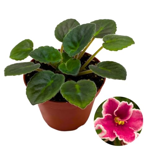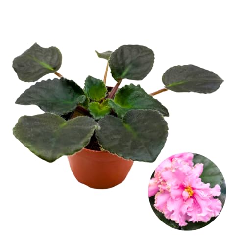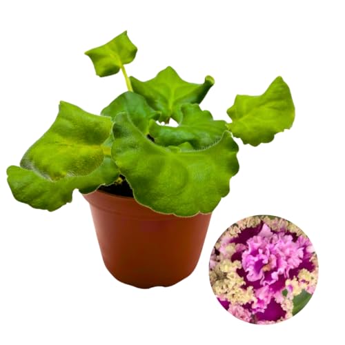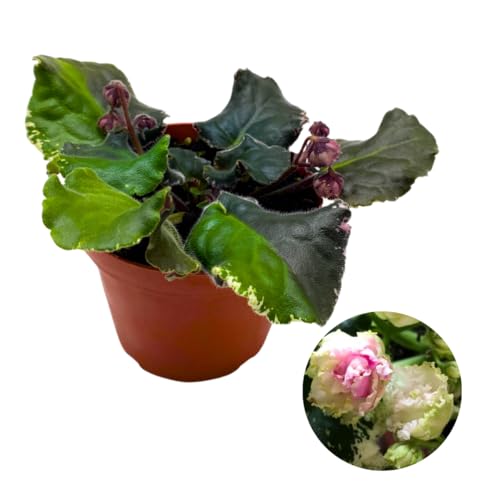 Harmony Foliage African Violet Variegated Irish Ruffles in a 4 inch Pot Pink Flower