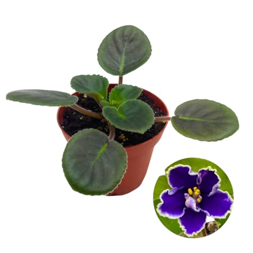 Harmony Foliage African Violet VaT Light in The Night 4 inch Blue Flower White Edge