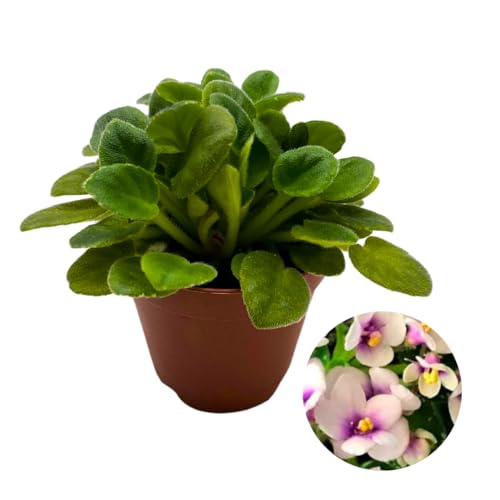 Harmony Foliage Mini African Violet California Victory, 2 inch White Pink Flower