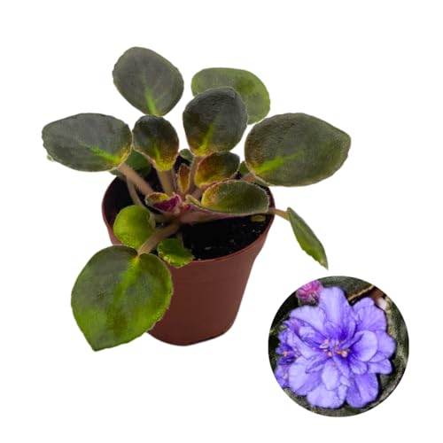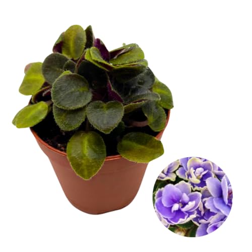 Harmony Foliage Mini African Violet Frosted Denim 2 inch Blue White Flower