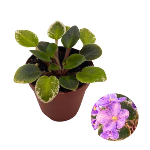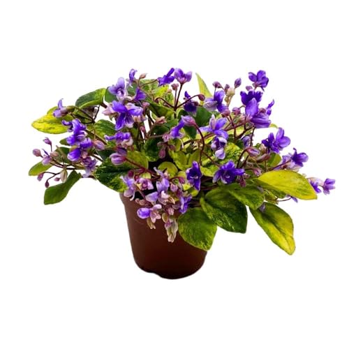 Harmony Foliage Mini African Violet Blue Halo Variegated, 2 inch Blue Flower
