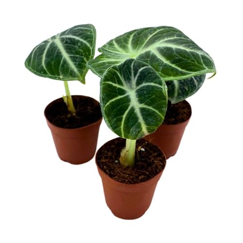 BubbleBlooms Alocasia Ninja, 2 inch Set of 3, Black Velvet Elephant Ear Tiny Mini Pixie Plants