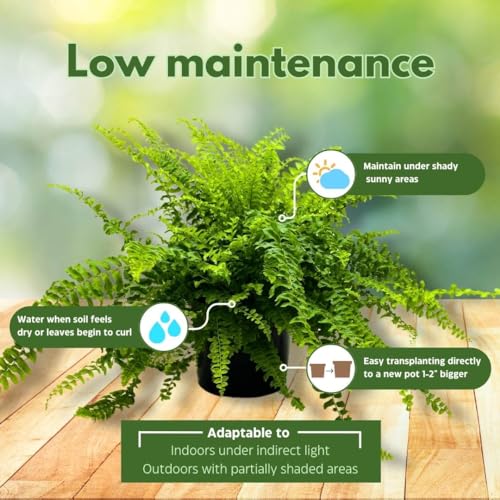 BubbleBlooms Boston Fern, in a 6 inch Pot, Nephrolepis exaltata,