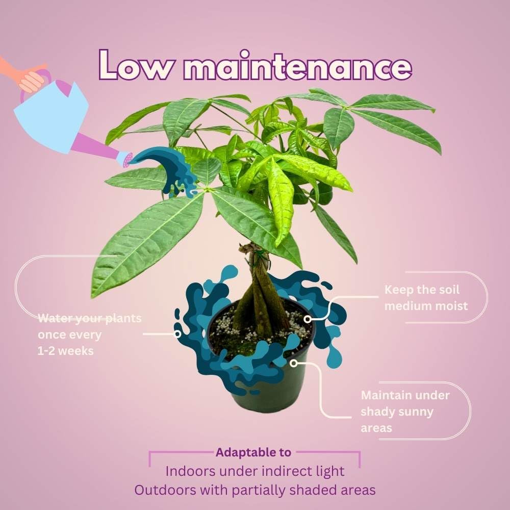 BubbleBlooms Braided Money Tree Pachira aquatica in a 6 inch Pot Water Chestnut Plant