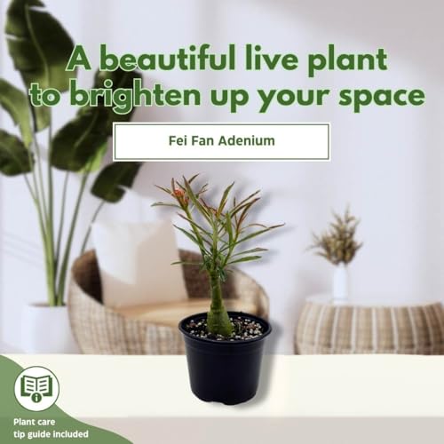 BubbleBlooms Desert Rose Fei Fan 5 inch Pot Pink Red and White Variegated Exotic Rare Flower