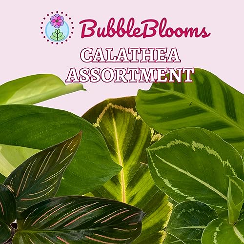 BubbleBlooms Calathea Assortment Set, 2 inch pots, 5 Different Prayer Plants, pet Friendly Indoor Low Light