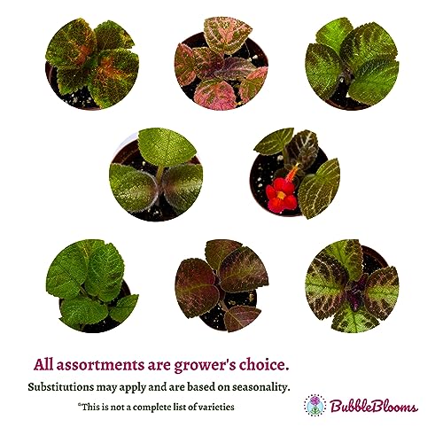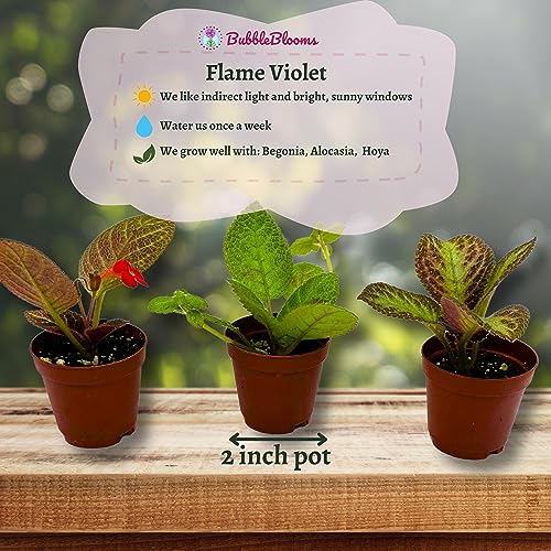 BubbleBlooms Flame Violet, Episcia Cupreata Assortment Set 2 inch pots 3 Different Velvet Plants, Tiny Mini Pixie Plant