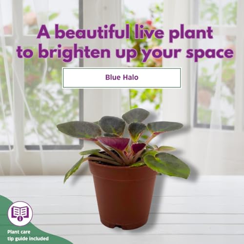 Harmony Foliage Mini African Violet Blue Halo Variegated, 2 inch Blue Flower