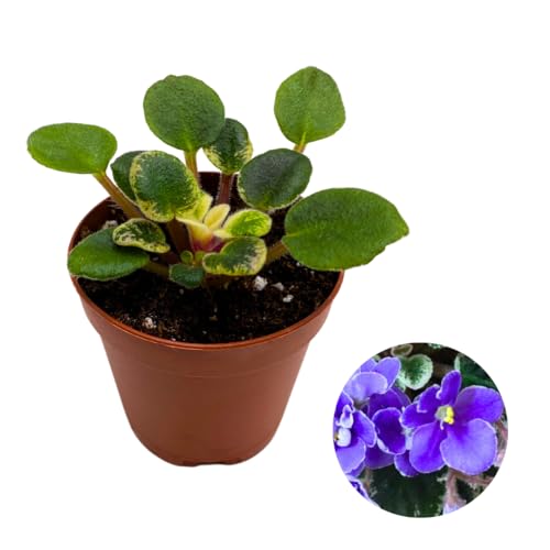 Harmony Foliage Mini African Violet Definitely Daryl Variegated 2 inch Blue Flower