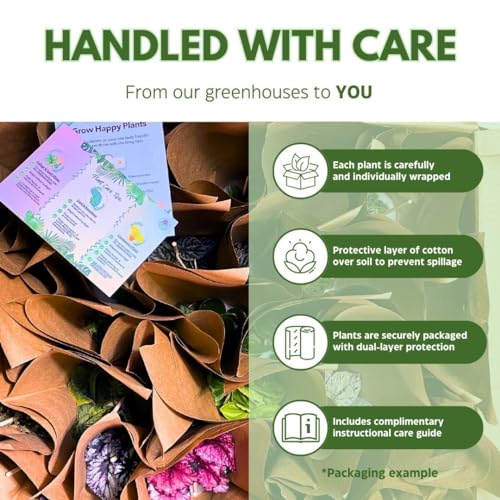 You will receive plant(s) similar to the listing photos. All plants come potted with soil in a plastic pot. A general plant care tip guide will be given with every order.