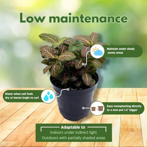 BubbleBlooms Pink Crinkle Frankie Fittonia Albivenis Nerve Plant in a 4 inch Pot Silver Net Leaf, Mosaic Jewel Creeping Indoor Plant Argyroneura