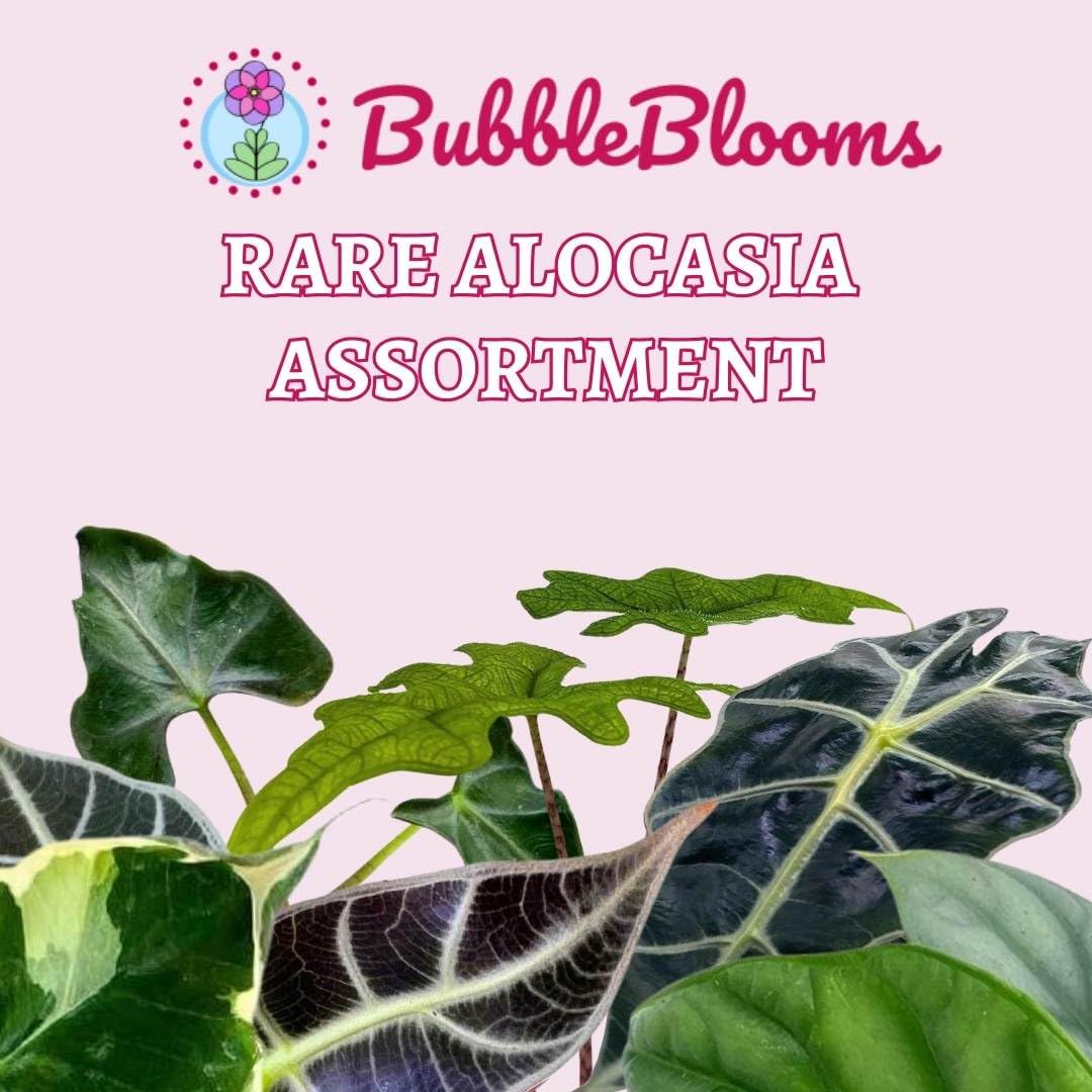 BubbleBlooms Rare Alocasia Assortment, 2 inch Set of 6, Jewel, Jacklyn, Cuprea Pixie Plants