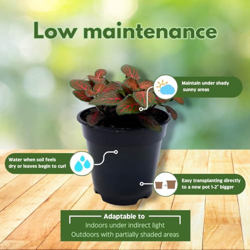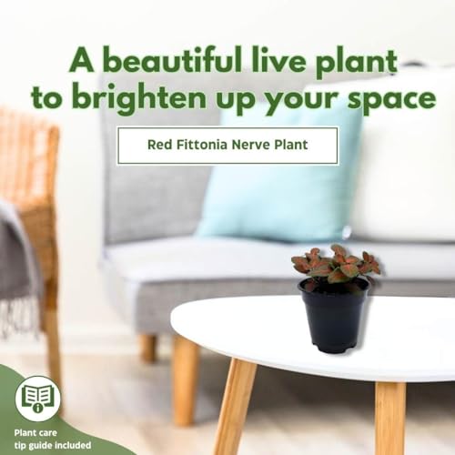 BubbleBlooms Red Fittonia Albivenis Nerve Plant in a 4 inch Pot Silver Net Leaf, Mosaic Jewel Creeping Indoor Plant verschaffeltii