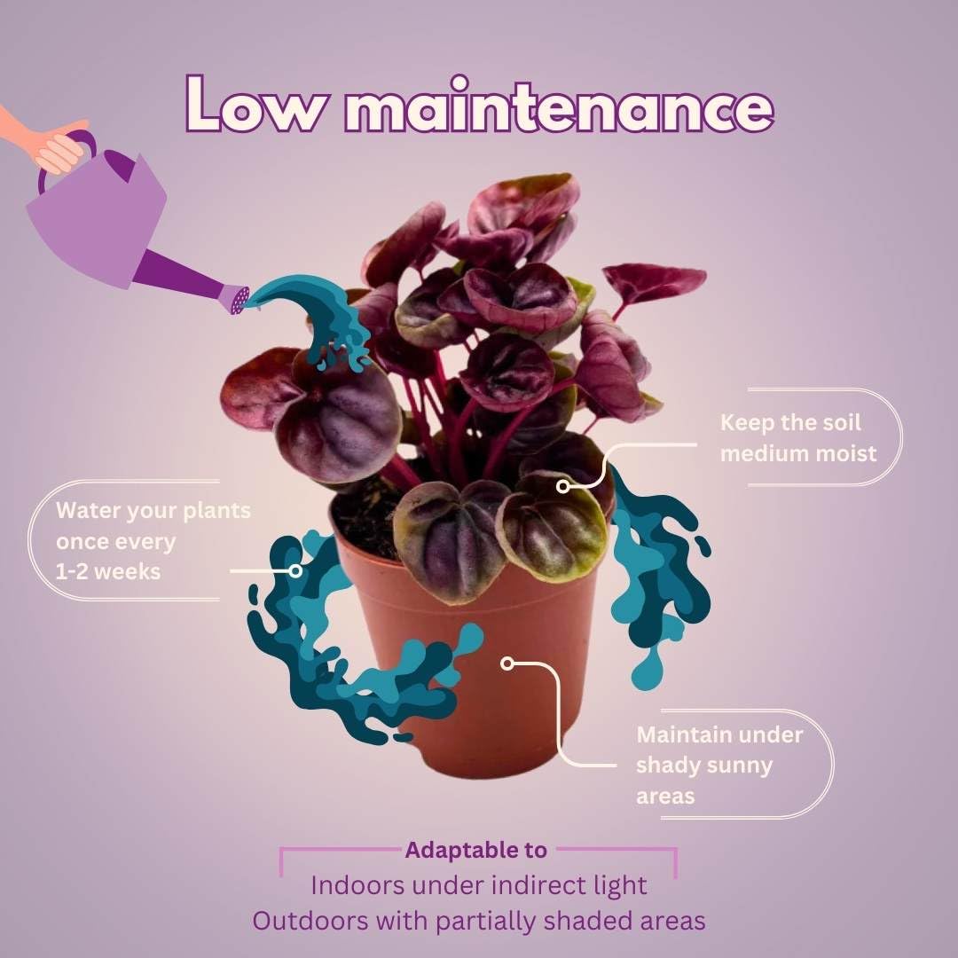 BubbleBlooms Red Peperomia caperata, Red Emerald Ripple, Frost, Platinum, in a 2 inch Pot Tiny Mini Pixie Plant