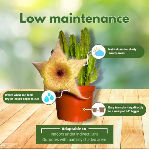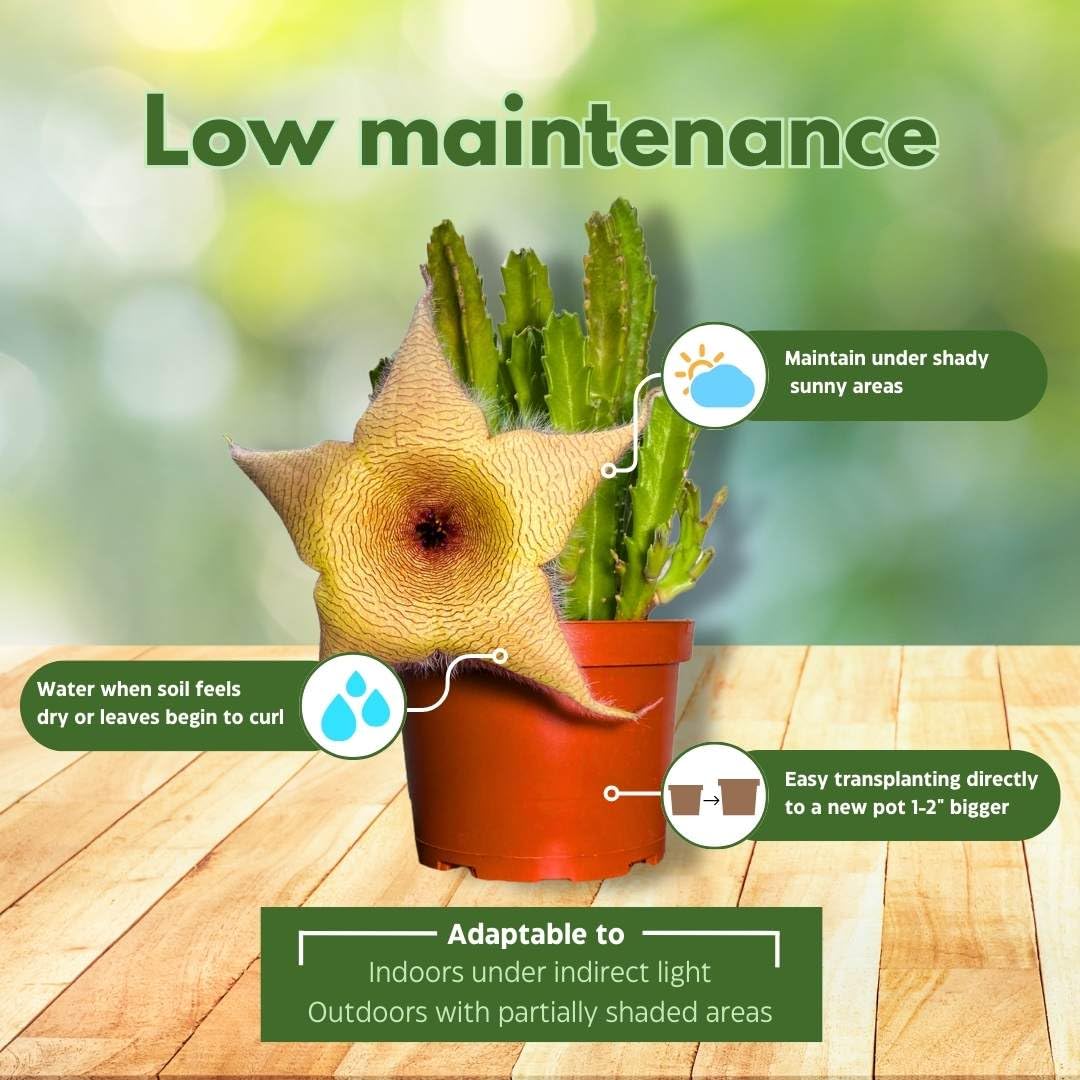BubbleBlooms Stapelia gigantea, Giant Starfish Flower, Rare Huernia, in 6 inch Pot