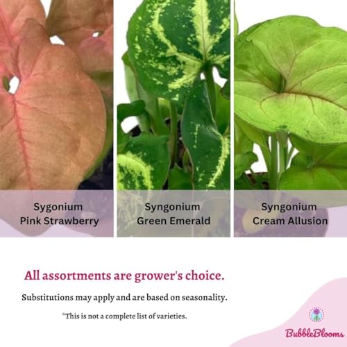 BubbleBlooms Syngonium Variety Assortment, 3 Different syngoniums in 2 inch pots