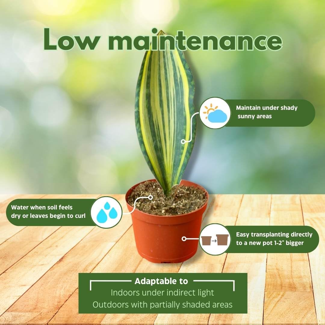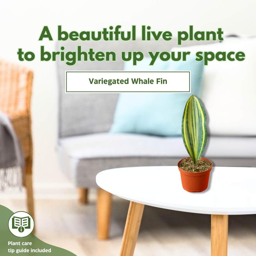 BubbleBlooms Variegated Whale Fin Snake Plant in a 6 inch Pot Sansevieria Masoniana Yellow Variegation, Whale Tail